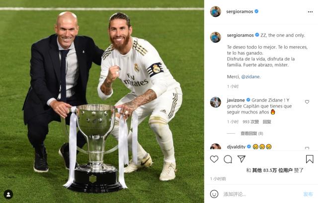 拉莫斯:“齐达内,One and only。希望你未来一切都好,这是你应得的,这也是你已经获得的。享受生活,享受家庭吧,一个拥抱。谢谢你教练。”