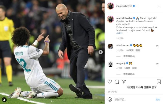 马塞洛:“感谢你传奇!感谢你多年来为这家俱乐部所做的一切,祝贺你已有的成就,也希望你未来顺利!”