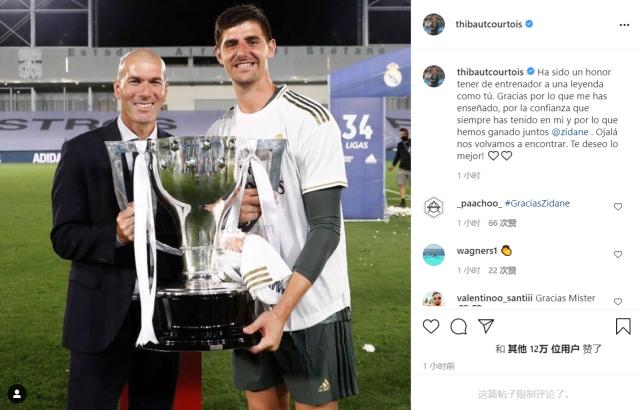 库尔图瓦:“能有像您这样的传奇作我的教练,是一种荣耀。感谢您教给我的一切,感谢您对我始终如一的信心,感谢我们取得的所有的成就。希望我们还会再见面,祝一切都好!”