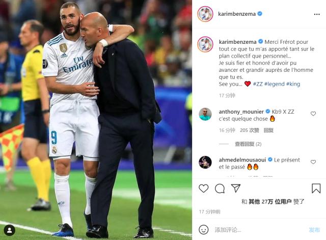 本泽马:“感谢您为了这个集体,为了我所付出的一切。能够与您相处并成长,让我感到自豪和荣幸。祝您好运,我们再会!”